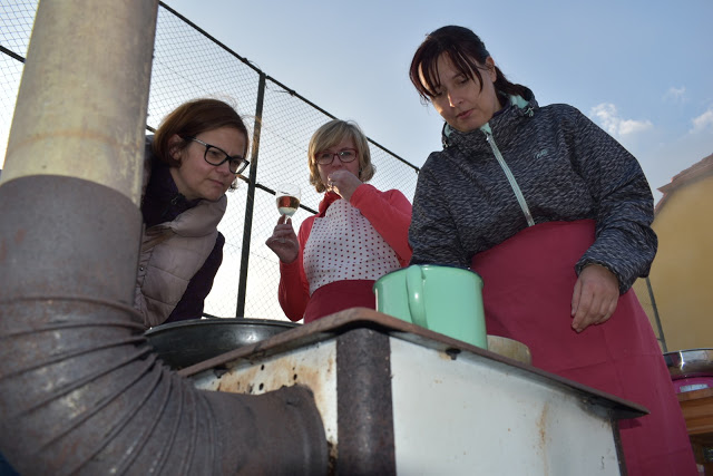 K tomu všemu se popíjel čerstvý jablečný mošt lisovaný přímo na místě a s přicházejícím podvečerem, kdy se pomalu ochlazovalo, přišel každému vhod mošt horký.